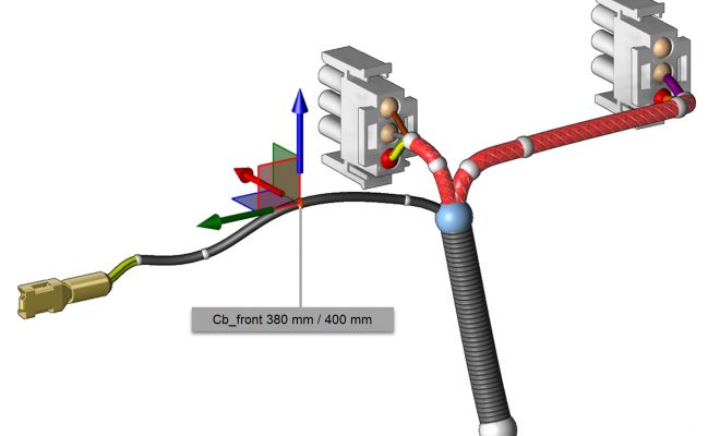 Az Eplan Harness proD szoftver segítségével az előre kiszámolt vezetékhosszokhoz igény szerint intuitív módon alakíthatók ki a kábelutak. A tervezés során pontosan jelenik meg a vezetékek aktuális, valamint kívánt hosszúsága, így a felhasználók egy pillanat alatt felismerhetik a kábelek optimális elvezetésének lehetőségeit.
