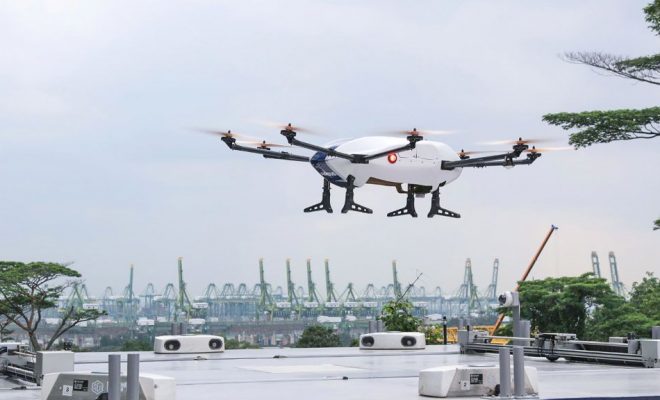 Az Airbus Helicopters Skyways csomagszállító drónja sikeres repülési bemutatót tartott a szingapúri egyetemen, egy postai küldeményt kézbesítésével.