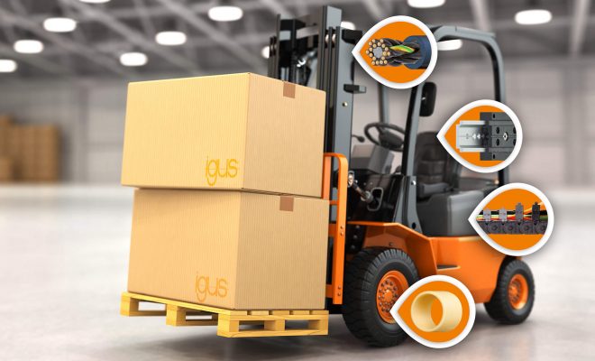 A LogiMAT szakvásáron az igus bemutatja a nagy teljesítményű polimerek villástargoncáknál lehetséges alkalmazási módjait
