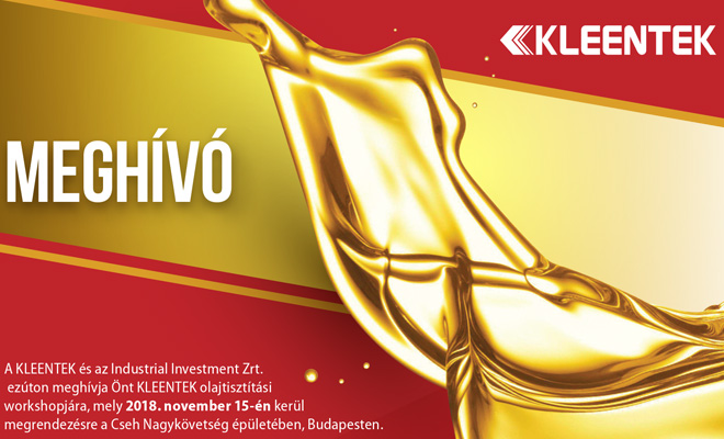 A cseh KLEENTEK és kizárólagos magyar partnere az Industrial Investment Zrt. közös egy napos Workshopot rendez november 15-én, a budapesti Cseh Nagykövetségen. Jelentkezési határidő: október 31.