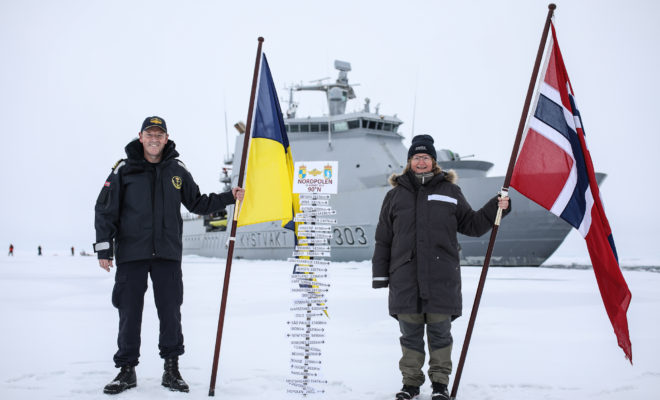 A norvég parti őrség KV Svalbard nevű hajója az első, amely Azipod® meghajtási rendszerével érte el az Északi-sarkot.