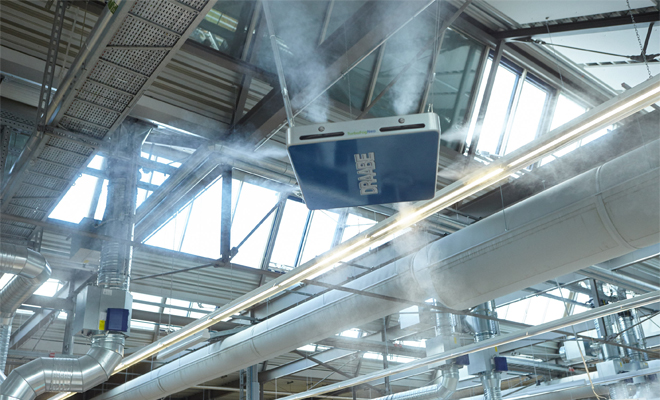 A magasnyomású fúvókával történő, direkt helyiség párásítás a levegő párásítás új módja számos ipari és irodai alkalmazás esetében. Az előnyei közé tartozik az egyszerű beépítés, a biztonságos vezérlés, az alacsony energiaköltségek és a nagyon jó higiénia.
