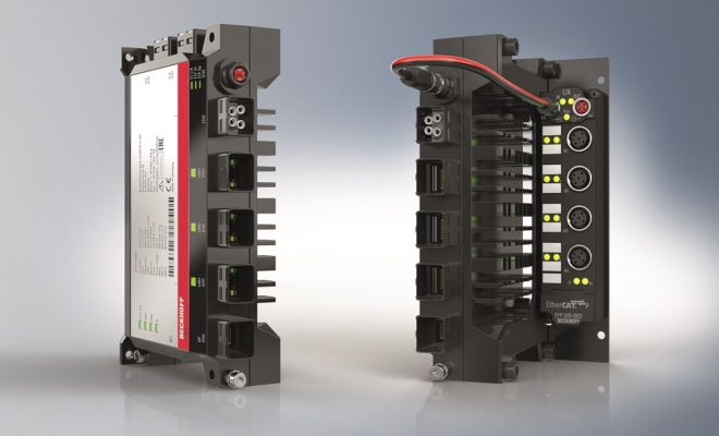 Az IP 65/67-es védettségű, C7015 típusú, ultrakompakt vezérlőeszköz (baloldalt) még olyan gépekre is telepíthető, amelyeken rendkívül szűk hely áll rendelkezésre. A vezérlőre közvetlenül ráhelyezhetők az EPP- sorozatú, EtherCAT be/kimeneti modulok (jobboldalt), amivel tovább mérsékelhető a gépelrendezés helyigénye.