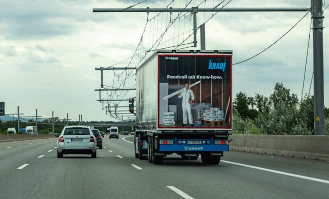 Július eleje óta az első németországi villamosított, függesztett felsővezetékekkel ellátott országúti tesztszakasz Frankfurt közelében teljes kapacitással üzemel öt pantográfos áramszedővel felszerelt Scania R 450 hibrid tehergépkocsi részvételével. Az öt tehergépkocsi utolsó példányát nemrég adták át az építőipari anyagokat gyártó német Knauf vállalatnak.
