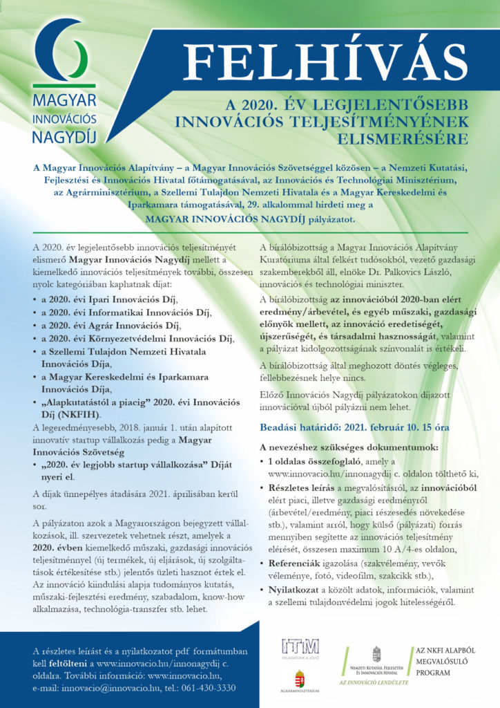 Felhívás a 2020. év legjelentősebb innovációs teljesítményének elismerésére.