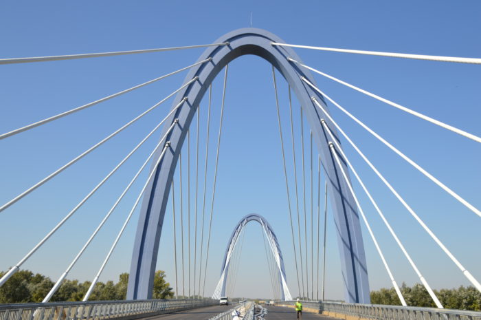 „Az általam tervezett ferdekábeles híd nagyon egyedinek számított, hiszen – mint nemrég utánanéztem – a világon a talán legelső hasonló épp abban az évben, 2005-ben készült el Olaszországban, de az gyaloghíd volt. A tervet életben tartottuk, azt benyújtottuk az M44-es Körös-hídjához, az M43-as Tisza-hídjához, végül pedig az M44-es gyorsforgalmi út Tisza-hídjához is. Ez utóbbinál el is nyertük a beruházó Nemzeti Infrastruktúra Fejlesztő Zrt. támogatását. A tervdokumentációk alapján a kivitelezőnek olyan ajánlatot kellett adnia, ami a kiviteli tervek elkészítését is tartalmazza, ezért a munka komoly egyeztetéseket és mindenre kiterjedő figyelmet igényelt”