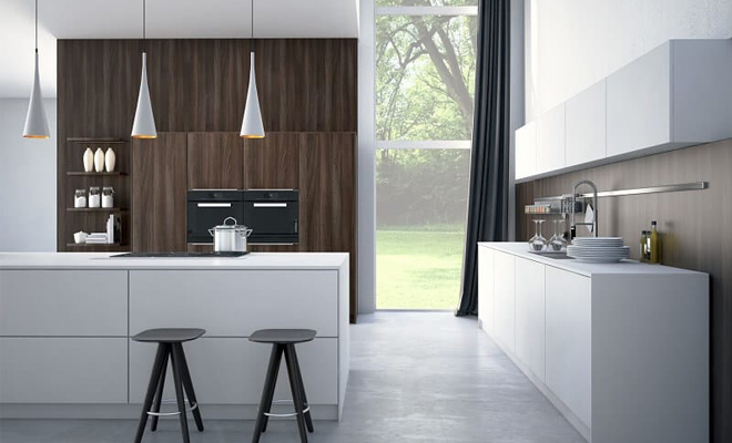 Modernebb konyhába modern bútor illik: a minimalista kivitel itt is egyre nagyobb teret hódít. Egyszerű fogantyúk, fekete, fehér, esetleg szürke színek uralják a helyiséget, minden szögletes.