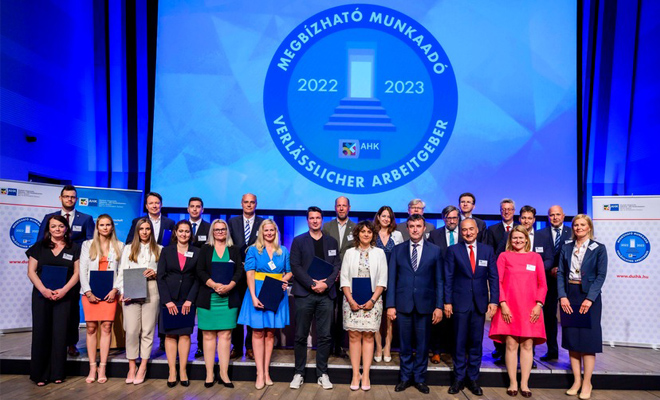 A Német-Magyar Ipari és Kereskedelmi Kamara (DUIHK) éves taggyűlésének keretében 22 tagvállalata vehette át a „ Megbízható Munkaadó 2022/23 “elismerő címet. A díjjal olyan vállalatokat jutalmaznak, amelyek példaértékű és megbízható módon gondoskodnak munkatársaik munka- es életkörülményeiről. A kitüntető okleveleket Sávos András a DUIHK elnöke és Dr. Palkovics László technológiai és ipari miniszter adták át.