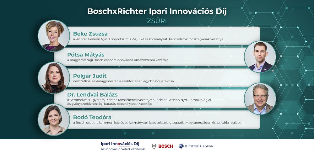 Tehetséges fiatalok jövőt formáló ötleteit várja Magyarország két vezető innovatív nagyvállalata: idén harmadik alkalommal hirdetik meg a BoschxRichter Ipari Innovációs Díjat a hazai egyetemisták, főiskolások számára. A pályázattal arra ösztönzik a diákokat, hogy új szemlélettel, kreatív, építő ötleteikkel formálják a gyógyítás és a közlekedés jövőjét.