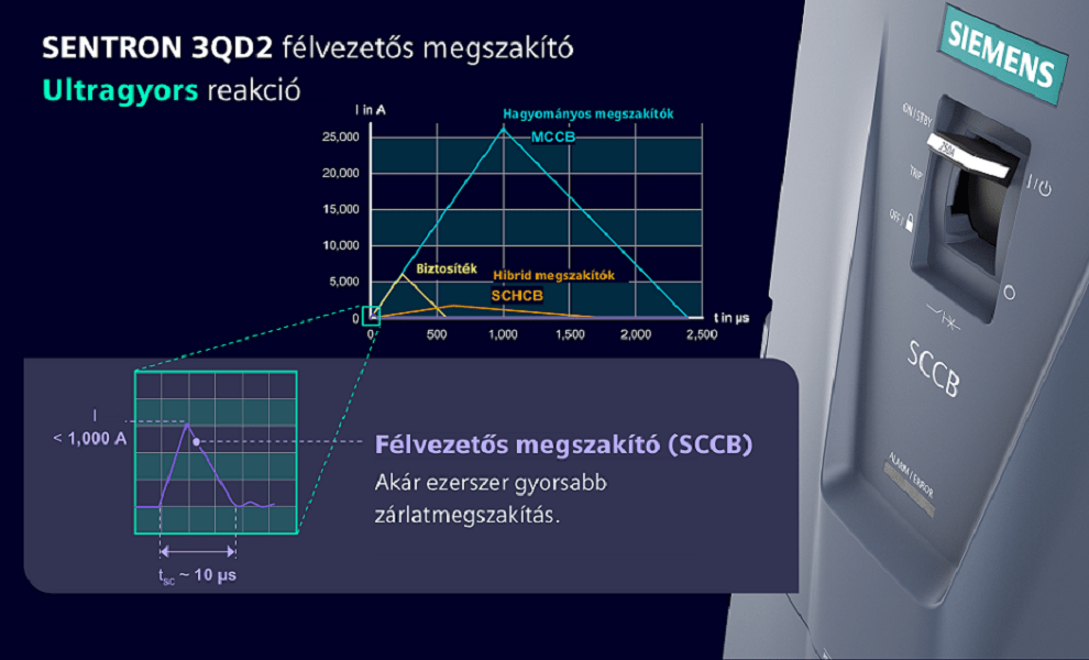 Az ipari kapcsolástechnika növekvő igényeire adnak választ a Siemens új megoldásai. A frissen debütált félvezetős megszakító, intelligens védelmi algoritmusokra épülve, mikroszekundumos tartományban képes zárlatokat megszakítani, ami akár ezerszer gyorsabb a hagyományos rendszereknél. Ez elengedhetetlen az egyenáramú (DC) hálózatok működéséhez, és jelentősen növeli a védelem szintjét, valamint a rendszerek rendelkezésre állását.