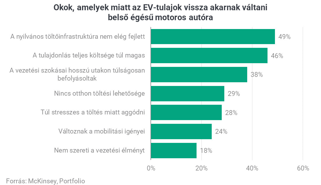 AZ ZÖLD ÁTÁLLÁS SZEMPONTJÁBÓL ELÉG AGGASZTÓAN HANGZIK, HOGY MINDEN MÁSODIK AMERIKAI EV-TULAJ VISSZATÉRNE A BELSŐ ÉGÉSŰ MOTOROS AUTÓKHOZ.