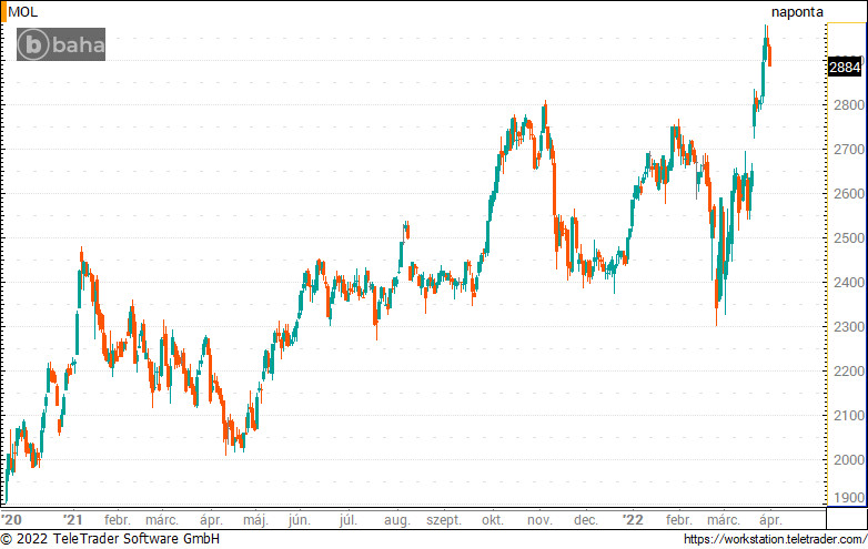 A Mol árfolyama ma 1,6 százalékot esett, idén 14,4 százalékkal került
