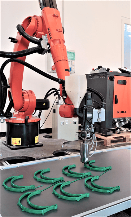 A KUKA nagy lehetőséget lát az additív gyártásban főként robotokkal egybekötve. Sok éves tapasztalattal rendelkezünk már a fém-és műanyagiparban, komoly szaktudást szereztünk a lézeres alkalmazások területén és átfogó termékportfólióval rendelkezünk, ami által teljesíteni tudjuk az ipari 3D nyomtatási eljárás legfontosabb előfeltételeit.  Véleményünk szerint a 3D technológia a fenntarthatóság egyik alappillére lesz.