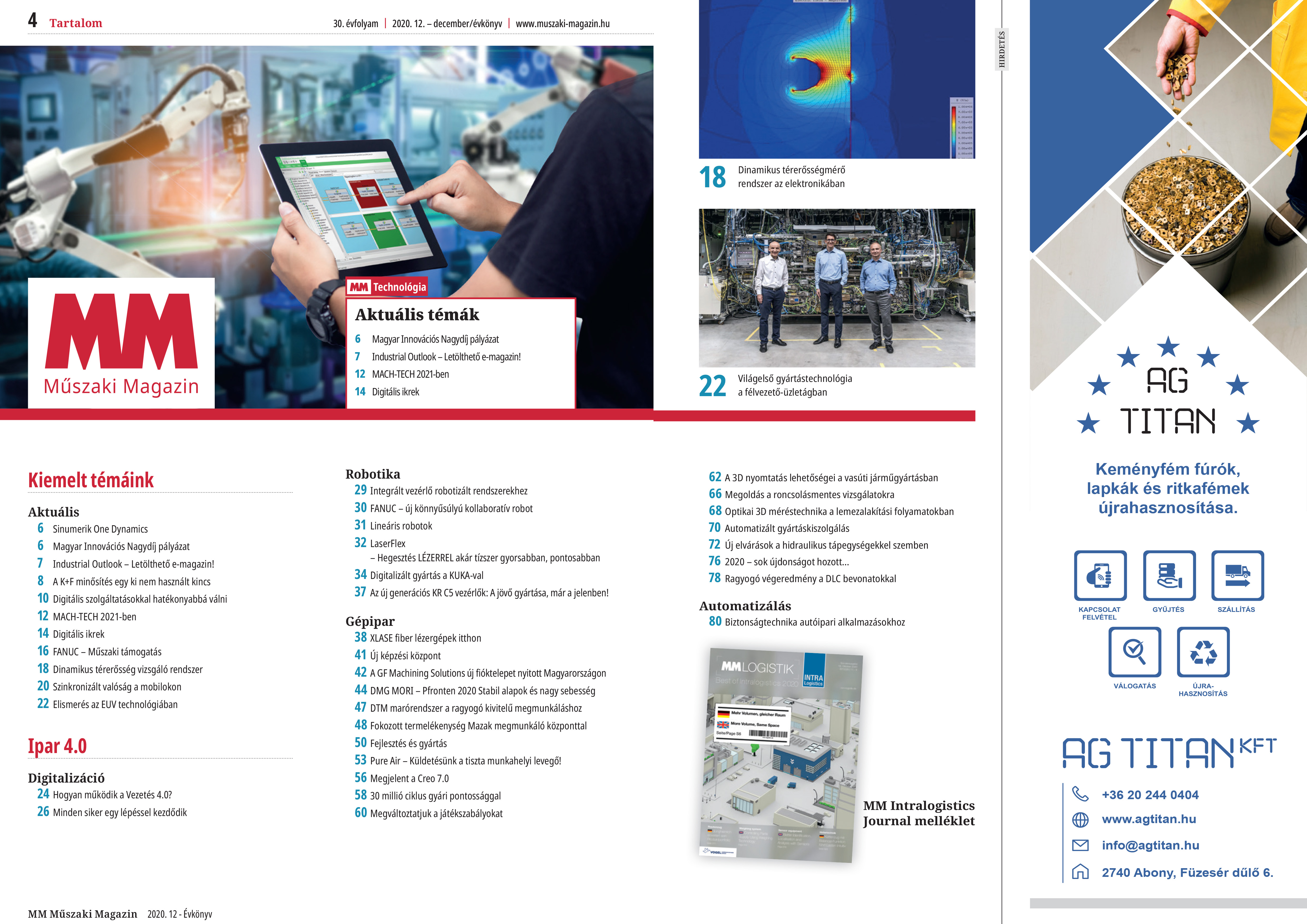 Műszaki Magazin 2020. decemberi lapszámának tartalomjegyzéke: