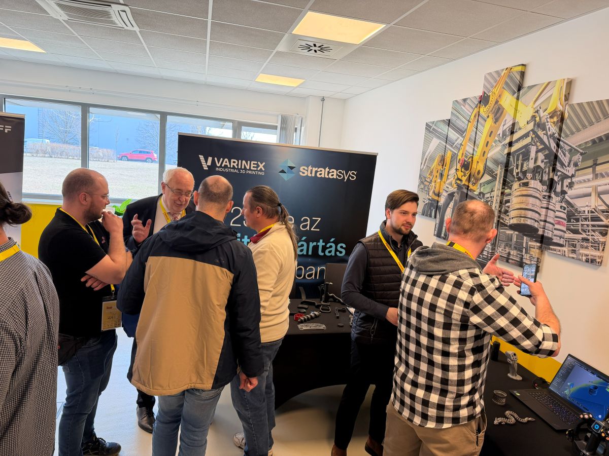 A kiállítók között a VARINEX Zrt. is bemutatkozott, amely elsősorban az additív gyártás és a robotizált mérési technológiák területén mutatta be megoldásait. A vállalat standján jól látható volt, hogy a robotika, a 3D szkennelés és a 3D nyomtatás egyre szorosabban kapcsolódik egymáshoz a modern ipari környezetben.